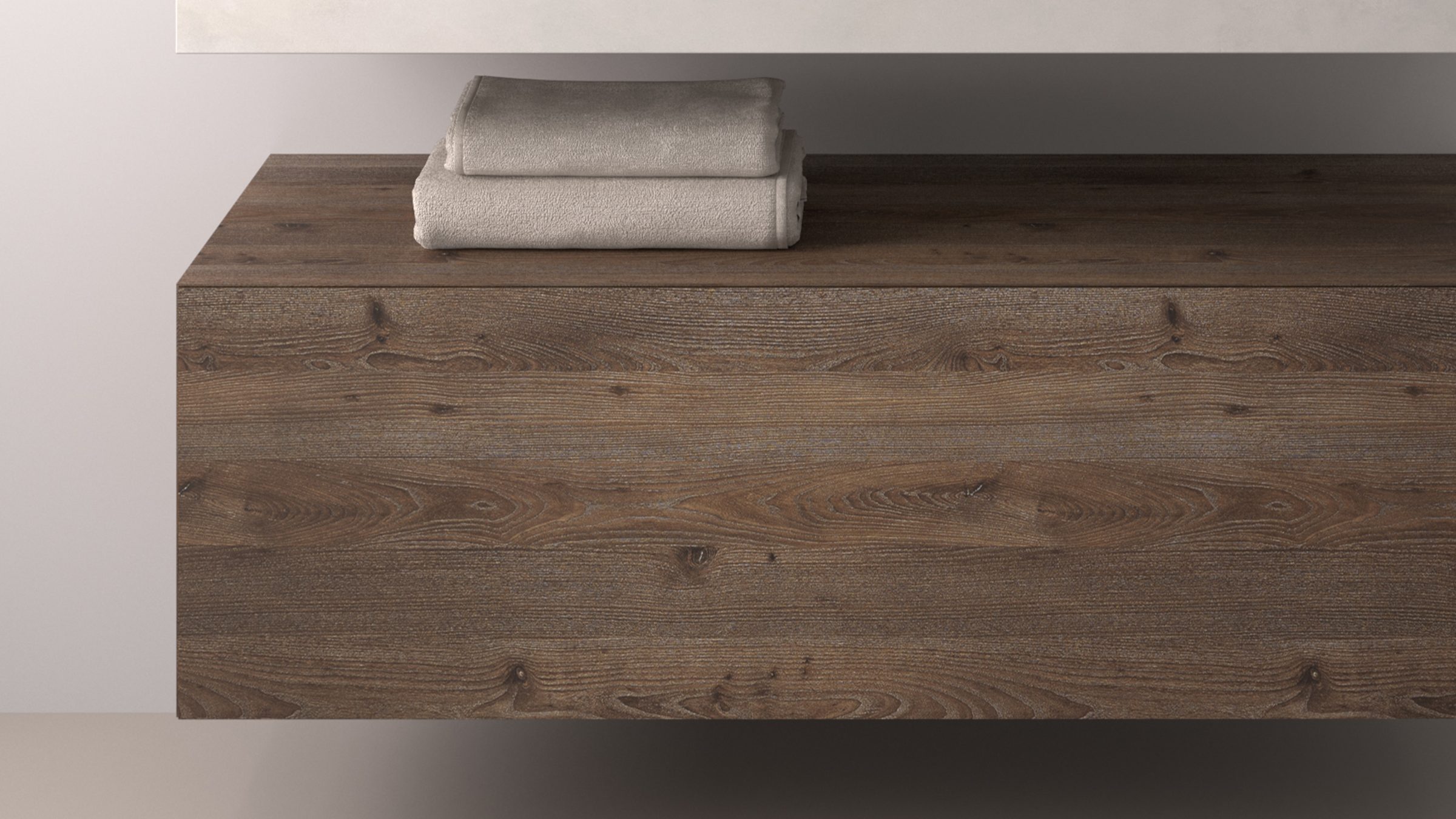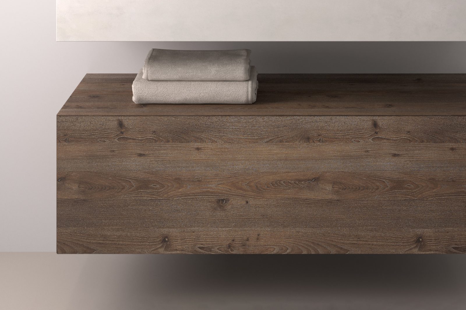 Echtholzfurnier bringt die natürliche Schönheit und Wärme von Holz in moderne Badarchitektur. Jede Furnieroberfläche wird sorgfältig ausgewählt und verarbeitet, um die einzigartige Maserung und Struktur des Holzes optimal zur Geltung zu bringen. Sie bestehen aus P3-verleimten Spanplatten, die beidseitig mit 0,6 – 0,7 mm starkem Echtholz Eiche oder Nussbaum furniert (Gesamtdicke 19 mm) und abschließend mit einem hochwertigen 2-Komponenten-Lack seidenmatt lackiert werden. So entsteht eine widerstandsfähige und langlebige Oberfläche, die gleichzeitig den authentischen Charakter des Holzes bewahrt.